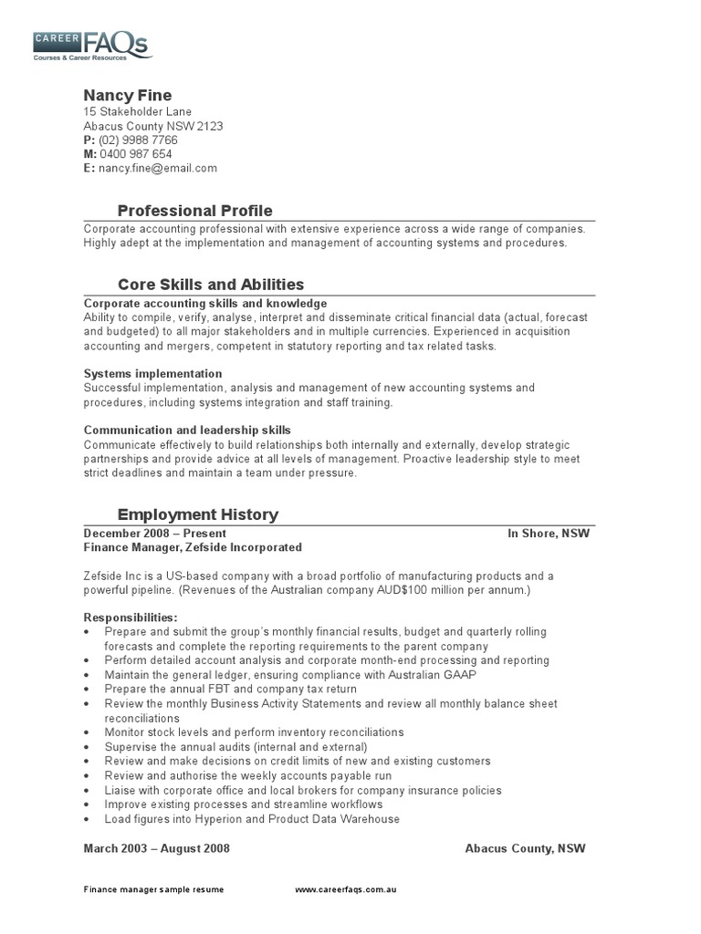 Skills emphasized on an example finance manager resume include comprehensive knowledge and practical experience in the treasury, accounting and finance. When writing your financial resume, you may want to highlight your experience with any software you may have used related to this area (microsoft excel, for example). Free finance manager resume templates. It also rejects resumes that do not contain the right words and phrases. A finance manager handles any of the functions that involve money within a company, including income, costs, payroll, investments, mergers, and acquisitions.